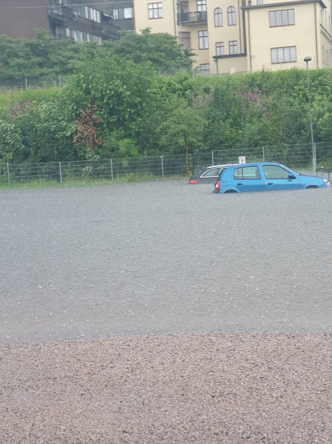 Då blev det översvämningar på gator, parkeringsplatser, källare, i affärslokaler